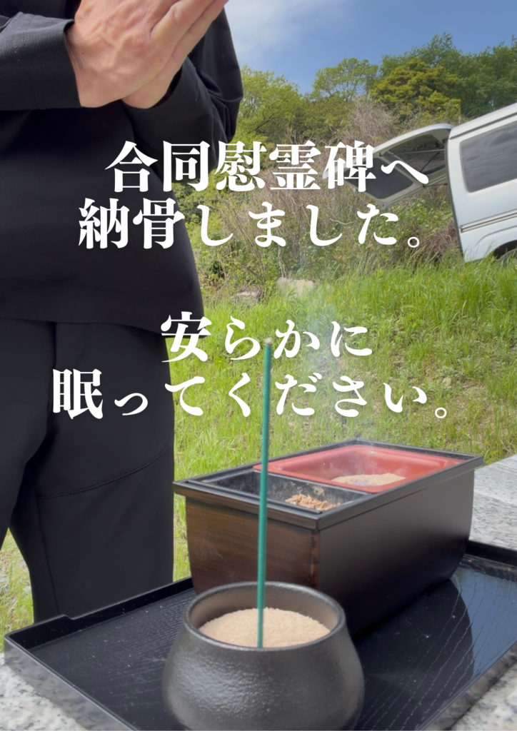 👉心を込めて納骨を行いました。 2026年4月25日 最終更新日時 : 2026年4月25日 maakun_admin まあくんハウスメモリー大阪 代表の宇治川です。 訪問ペット火葬でのお客様からご依頼いただいた、合同火葬のお子様達の納骨に参りました。 安らかに眠ってください。との想いをお伝えし手を合わせました。 Screenshot IMG_1949ダウンロード